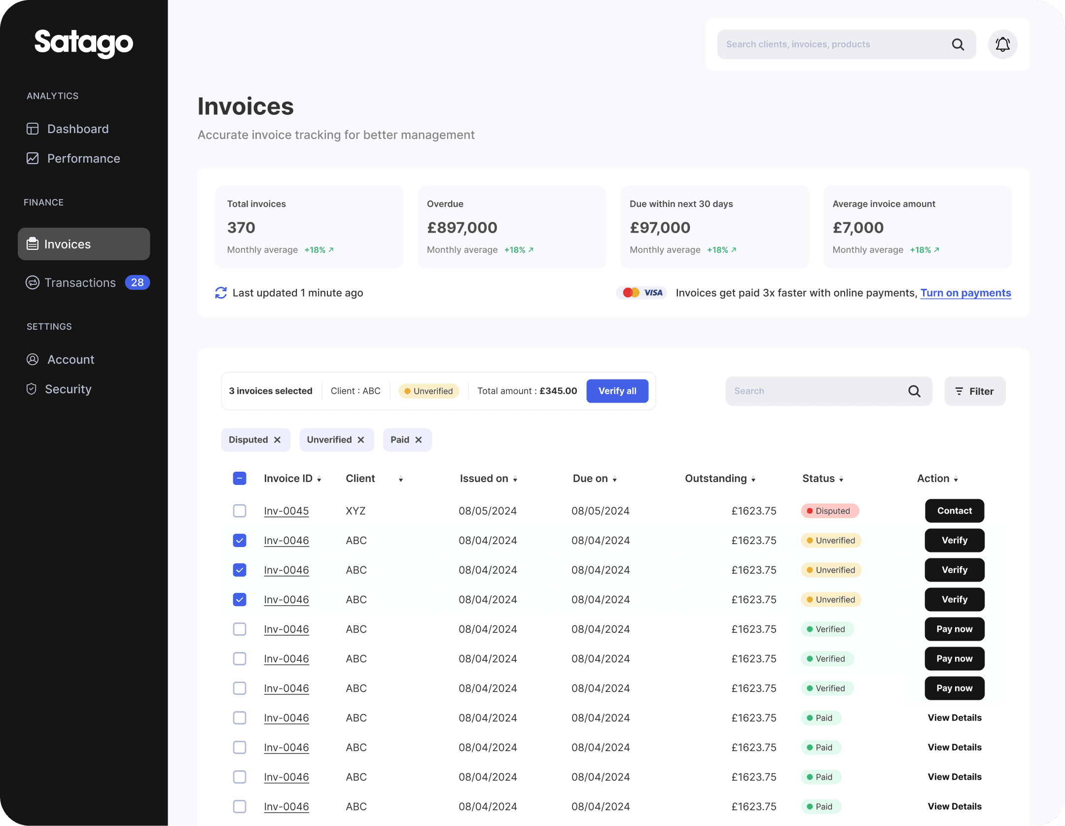 Optimising Satago's client platform
